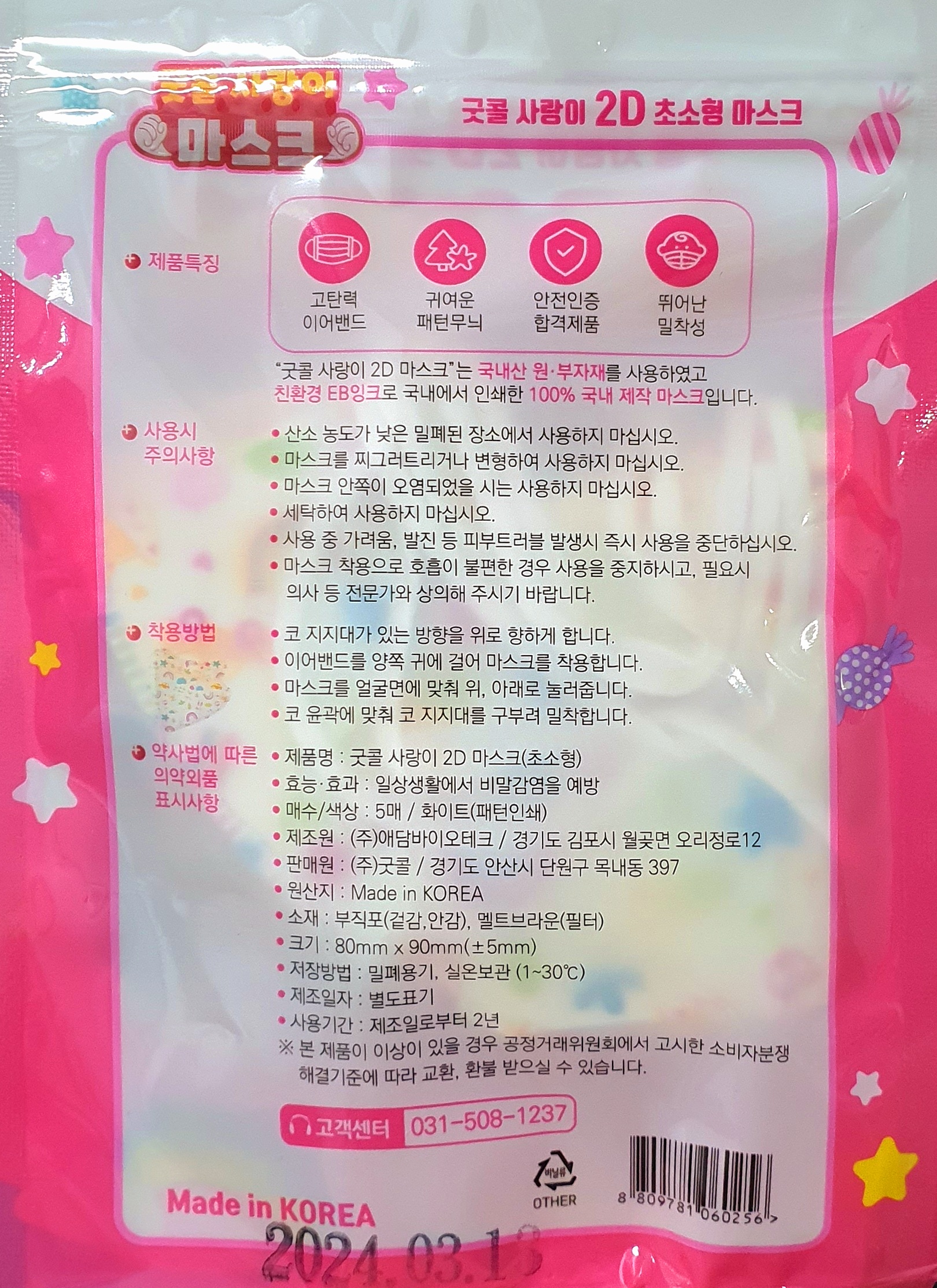 상품명: 굿콜사랑이마스크초소형