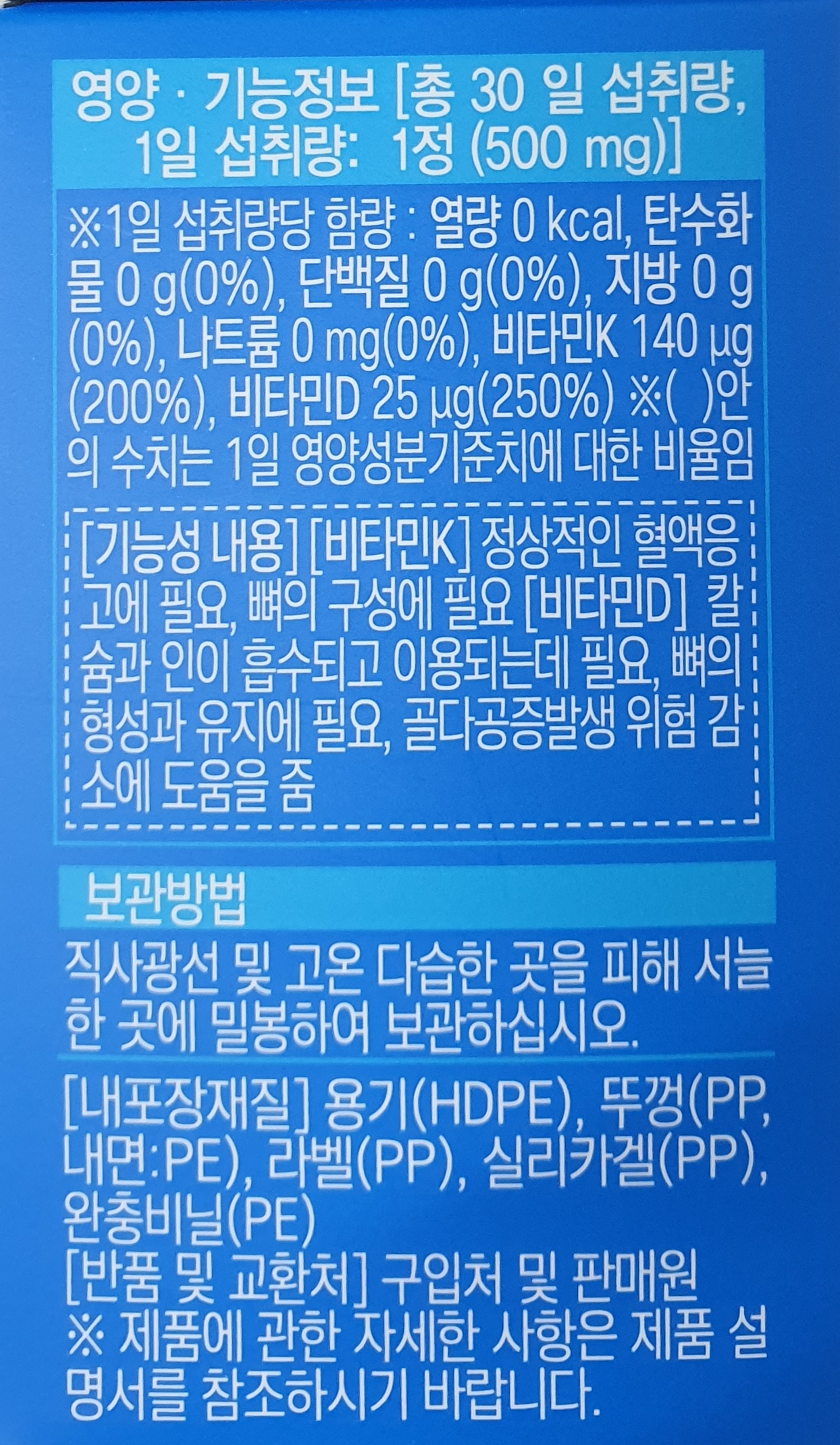 상품명: 뼈로가는메나퀴논K2&D3